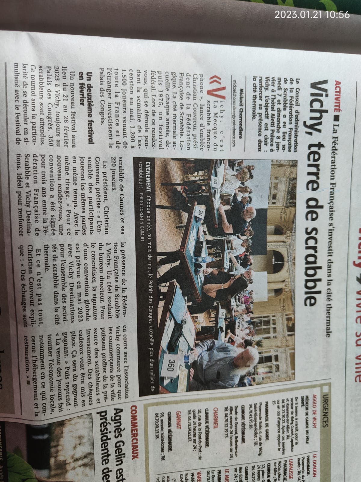 Lors de notre CA des 7 et 8 janvier 2023, le journal La Montagne nous a fait l’honneur de faire un point avec nous sur l’investissement de la Fédération dans la cité thermale où nous sommes présents depuis des décennies.