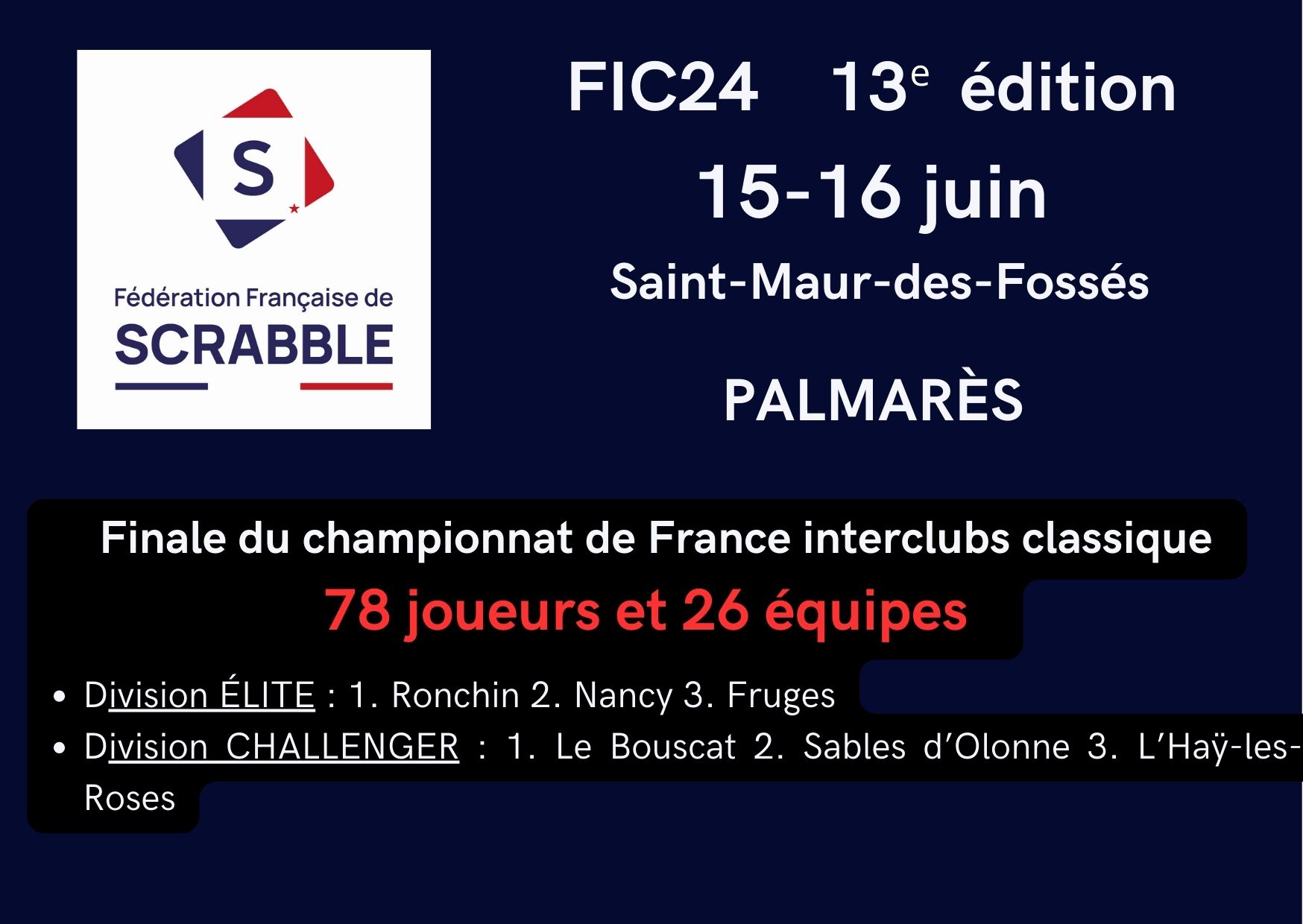 Finale des Interclubs Classique (FIC) à Saint-Maur-des-Fossés : classement final