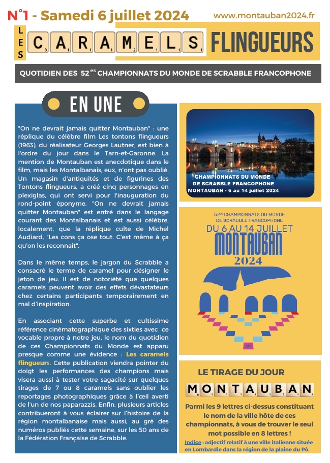 ► Journal quotidien des Championnats du monde 2024 Caramels flingueurs n°1 (12 pages).