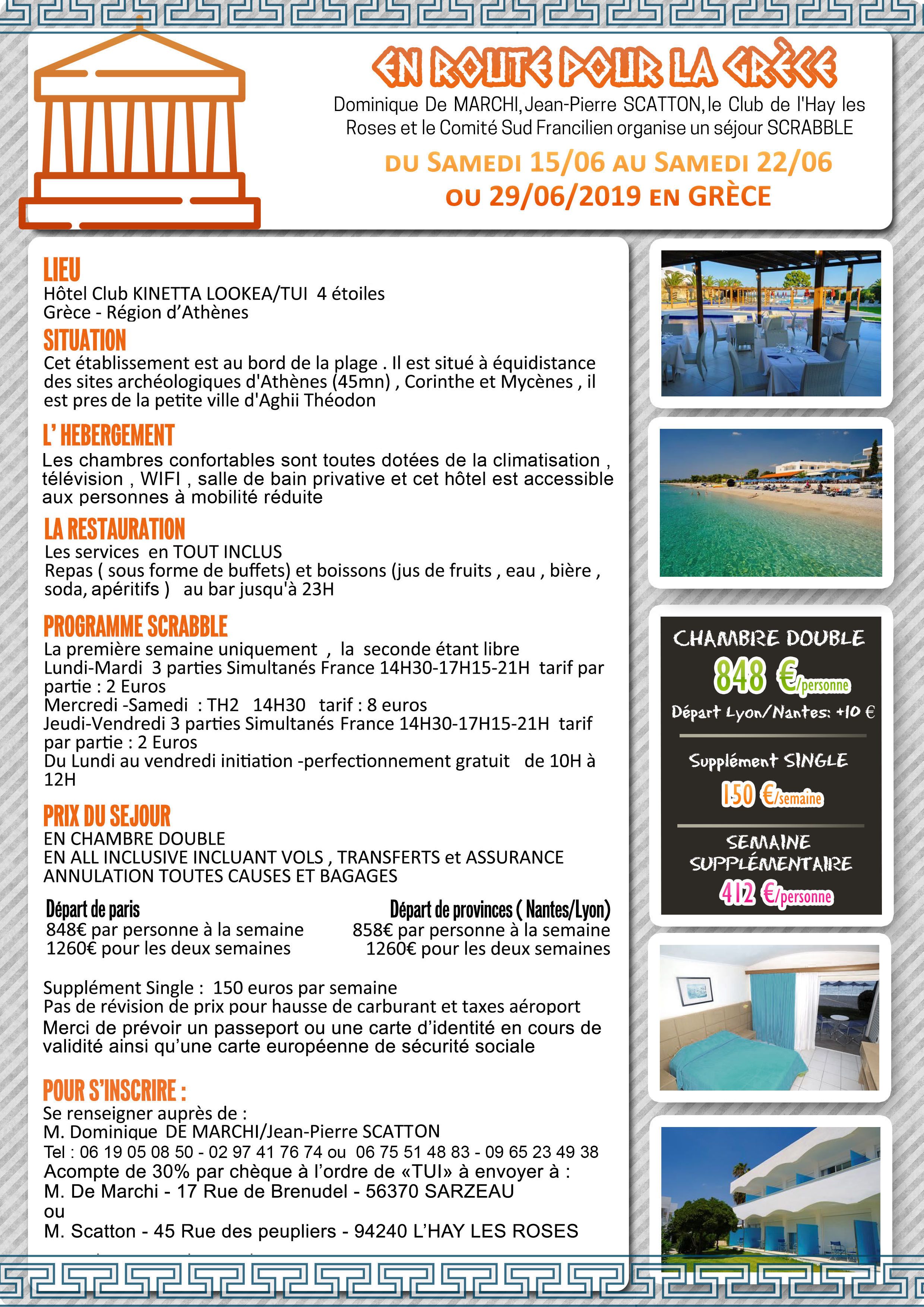 Acompte de 30% par chèque à l’ordre de « TUI » à envoyer à Dominique De Marchi 17, rue de Brénudel 56370 SARZEAU ou JP Scatton 45, rue des peupliers 94240 l’HAY LES ROSES
