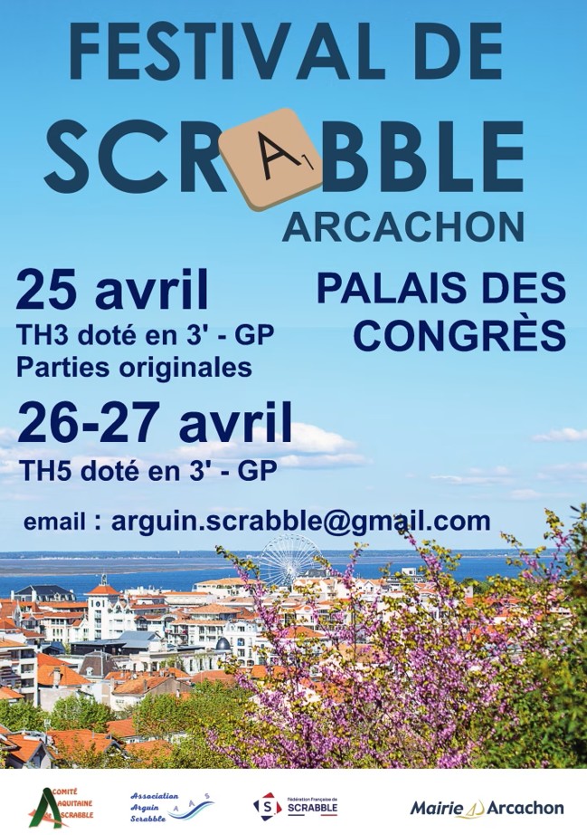 Paiement par chèque individuel ou regroupé par club avant le 22/04/2025 à l'ordre de Association Arguin Scrabble