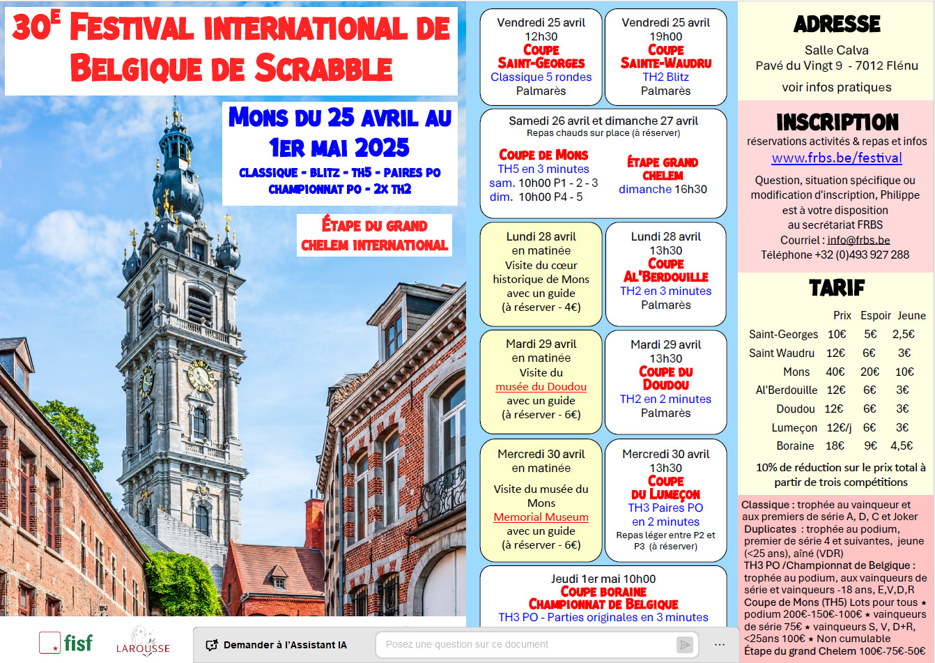 Modes de paiement : Inscription en ligne : | Non renseigné |