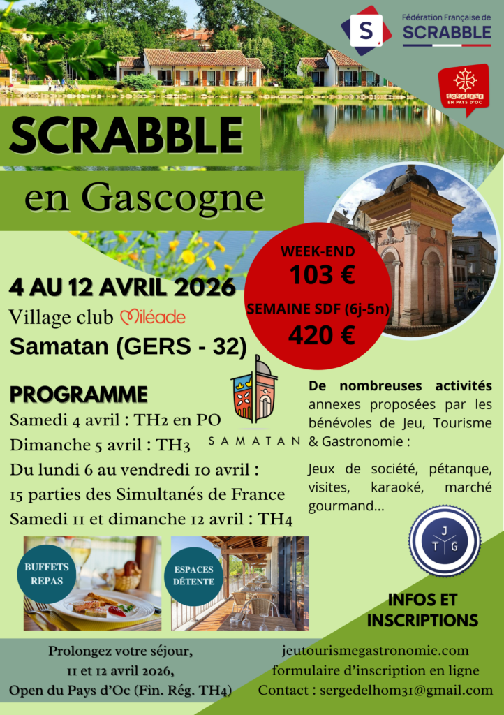 Matinée et soirée : de nombreuses activités annexes vous sont proposées par les bénévoles de Scrabble en Pays d'Oc et JTG : jeux de société, pétanque, randonnées, visites, karaoké, quiz, marché gourmand